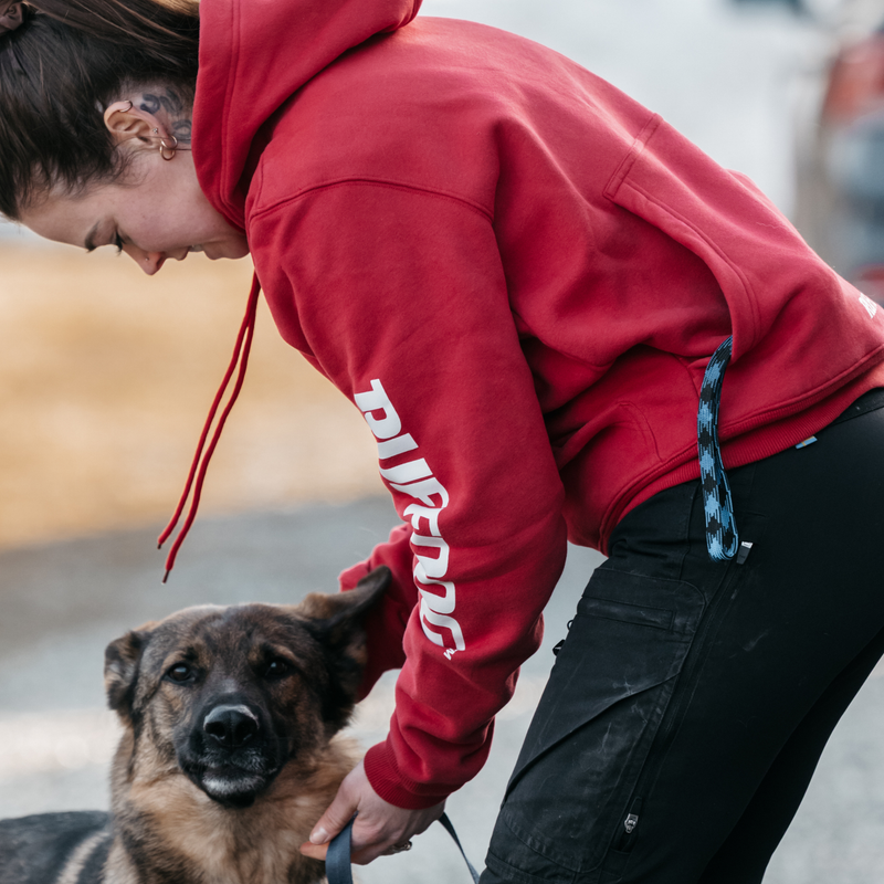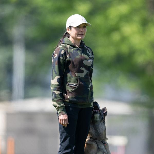 Unlike standard retail hoodies, Ruffdog apparel includes our signature rear tunnel pocket, designed specifically for working dog handlers who need functional storage on the training field.